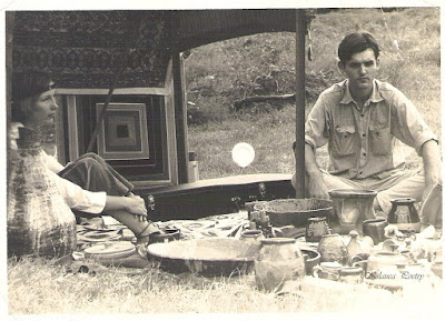 For Monocrome Weekly My sister & brother-in-law, selling her wares at the 1969 Crater Festival- Diamond Head, Oahu- This wasNew Years ( I guess it's close to the anniversary? Wonder what musicans were playing?