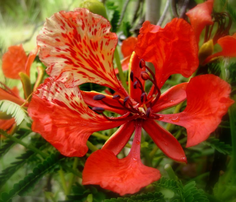 The creater had accidently spilled salmon onto the Royal Poinciana or the other way round?